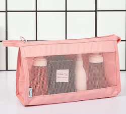 Wholesale Daily Use High Quality Polyester Mesh Tote Cosmetic Bag Zipper Closure Fashion Style Customizable Color Thread Logo